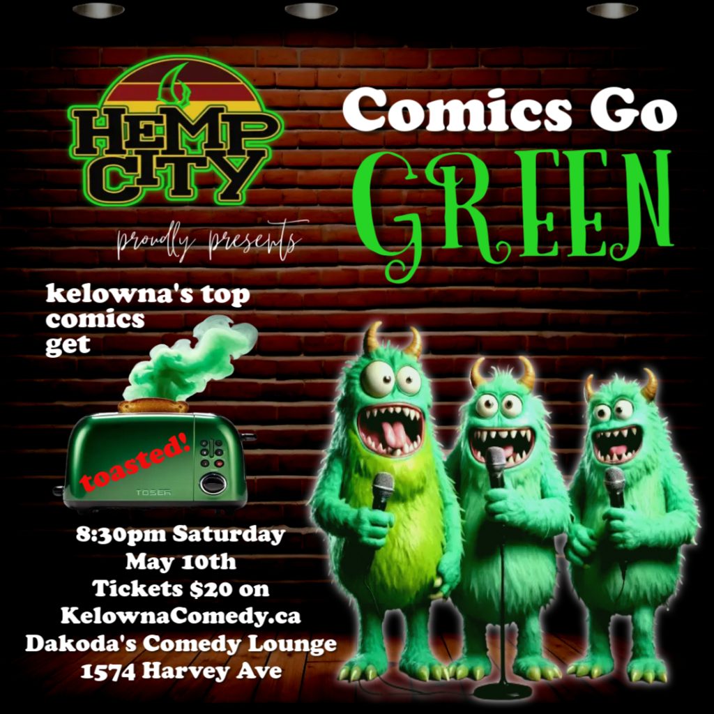Join us at Hemp City’s Comics Go Green, where the funniest comedians in the business will take the stage in a unique and hilarious experience!