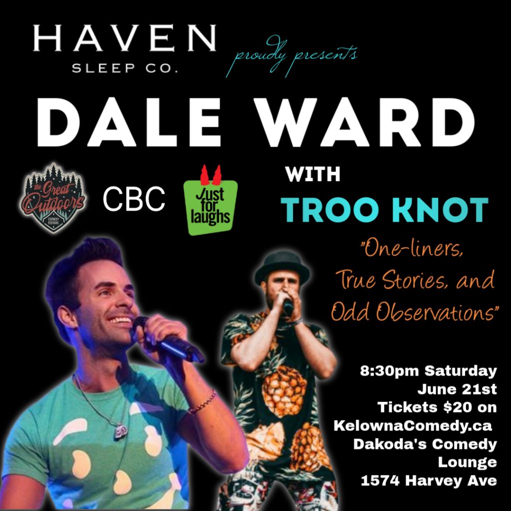 Haven Sleep Co. presents Dale Ward with Troo Knot at Dakoda’s Comedy Lounge! Get ready for a wild night of high-energy comedy, live music, and unforgettable entertainment. Dale Ward is a touring headliner known for his rapid-fire one-liners, bizarre observations, and electric stage presence. He’s been featured on a Just For Laughs live album, works as a professional artist and actor, and has gone viral with over 215,000 TikTok followers and 10 million+ views on a single video shared by 9Gag and LADBible. His comedy is sharp, silly, and endlessly original—guaranteed to leave you laughing.