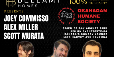 Bellamy Homes presents the Kelowna Comedy Festival with Gonzo Okanagan feature Joey, Alex, and Scott